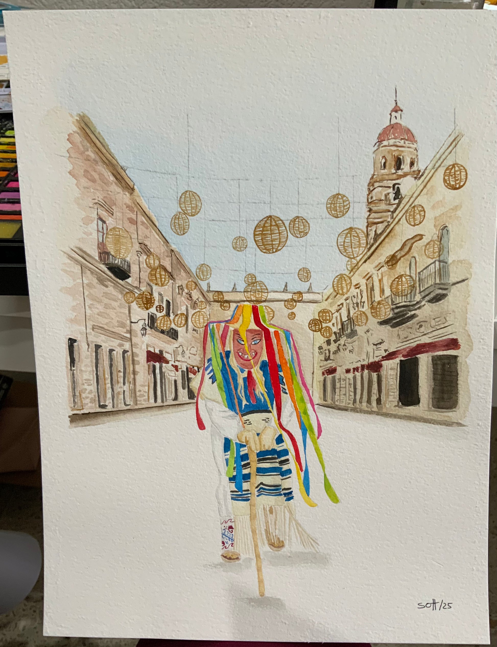 El dibujo CARTA es tamaño 22.9 X 30.5 cm en papel FABRIANO de 300 gr con técnica acuarela.